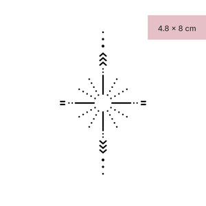 Erlebe jetzt die faszinierende Himmelsmagie auf deiner eigenen Haut mit unserem "Ornament eines Sternes" - Tattoo. Dieses zarte Sternenmuster verleiht deinem täglichen Leben einen Hauch von Astronomie und eignet sich perfekt für Sternenbeobachterinnen und Träumerinnen. Dank der bahnbrechenden Jagua-Frucht-Technologie bleibt dieses Kunstwerk bis zu zwei Wochen erhalten und verschmilzt nahtlos mit deiner Haut. Egal, ob du es am Handgelenk oder am Knöchel trägst, dieses Tattoo wird dich zum Leuchten bringen