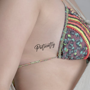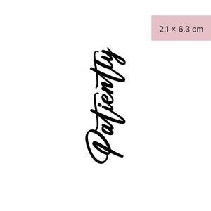 Geduldig zu sein, ist eine Tugend und unser temporäres Tattoo "Patiently" erinnert dich daran. Dieses auffällige und doch bedeutungsvolle Schriftdesign steht für Geduld und Ausdauer. Mit unserer fortschrittlichen Jagua-Frucht-Technologie bleibt es bis zu zwei Wochen auf deiner Haut. Trage es stolz an Arm, Bein oder einer anderen gewünschten Stelle und erinnere dich mit ihm stets daran, dass gute Dinge denen zuteilwerden, die geduldig sind.