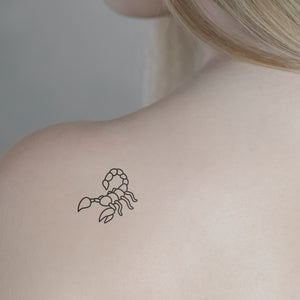 Biete deinem Look eine subtile Eleganz mit unserem temporären Skorpion Symbol - Tattoo. Dieses minimalistische Design strahlt Anmut und Raffinesse aus. Mit der Jagua-Frucht-Technologie hält es bis zu zwei Wochen, da in die erste Hautschicht einzieht und sich mit der natürlichen Hautregeneration danach auch wieder verflüchtigt. Perfekt für Handgelenk oder Nacken, um deinen einzigartigen Stil zu betonen.