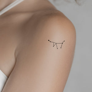 Verankere deine Ziele mit unserem "Sternenkonstellation Steinbock" - Tattoo. Dieses temporäre Tattoo ist ein Tribut an deine Beharrlichkeit und Ambitionen und bleibt bis zu zwei Wochen lang auf deiner gewünschten Hautpartie sichtbar. Mit der Jagua-Frucht-Technologie ist es eine perfekte Wahl für die Schulter, den oberen Rücken oder auch jede andere Stelle deiner Wahl, um dein astrologisches Zeichen stilvoll zur Schau zu stellen. Zeige deine Liebe zur Astrologie und setze ein Statement mit diesem auffälligen Körperschmuck.