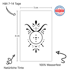 Unsere Tattoos zaubern dir in nur 12-36 Stunden Kunst auf die Haut. Brauchst du Unterstützung? Schau dir unser Anleitungsvideo an.