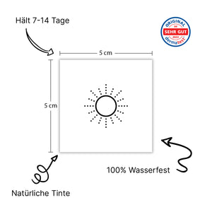 Unsere Tattoos zaubern dir in nur 12-36 Stunden Kunst auf die Haut. Brauchst du Unterstützung? Schau dir unser Anleitungsvideo an.
