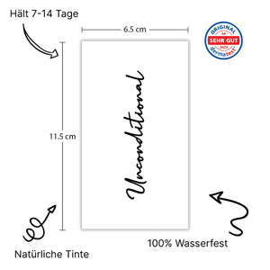 Unsere Tattoos zaubern dir in nur 12-36 Stunden Kunst auf die Haut. Brauchst du Unterstützung? Schau dir unser Anleitungsvideo an.