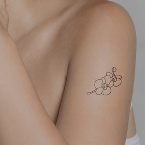 Verleih deinem Look mit dem temporären Tattoo "Zwei Orchideen" von minink einen Hauch von exotischer Eleganz. Inspiriert von der wilden Schönheit der Natur, ist dieses Design perfekt für Abenteurerinnen, die deine Liebe zur Freiheit und zum Reisen zum Ausdruck bringen möchten. Hergestellt mit innovativer Jagua-Frucht-Technologie, bietet es bis zu zwei Wochen lang einen atemberaubenden Körperschmuck. Trage es auf dem Arm, Rücken oder Knöchel, um auf dem nächsten Festival oder Abenteuer zu glänzen.
